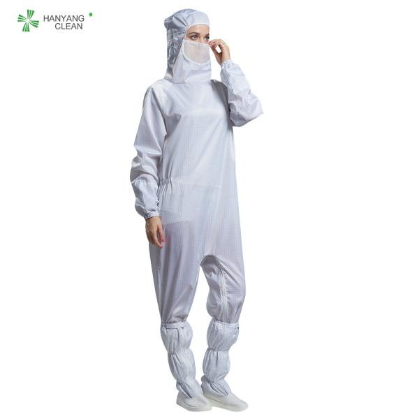 ESD Cleanroom Coverall Clean Room Garments Connect With Hoods And Shoes White Color For Class 100 Images |